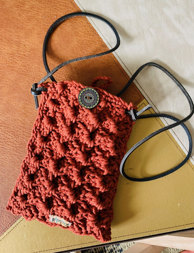 Sac en crochet, porte téléphone, en corde, anse à bandoulière en cuir