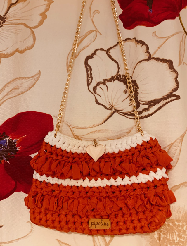Sac en crochet, en tissu recyclé, chaine metal