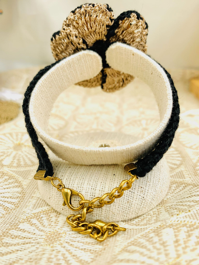 Bracelet en crochet, Fleur en coton, fermeture réglable